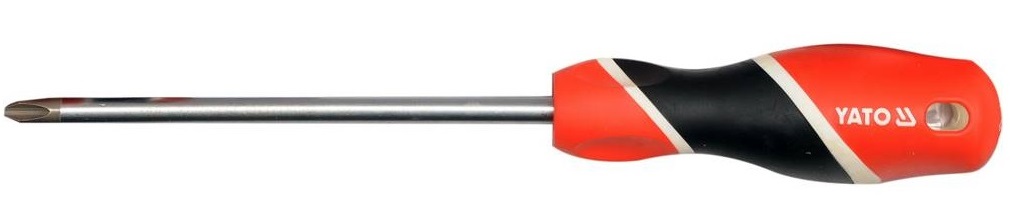 Wkrętak krzyżakowy typ Ph .Trzpień walcowy, wykonany ze stali o symbolu S2, utwardzany do około 58 HRC. Powierzchnia trzpienia satynowana, końcówka robocza utwardzana i piaskowana / wzmacnia to stabilność grota /. Rękojeść wykonana z odpowiednio dobranych tworzyw o różnych twardościach. Do profesjonalnych prac montażowych w różnych branżach.