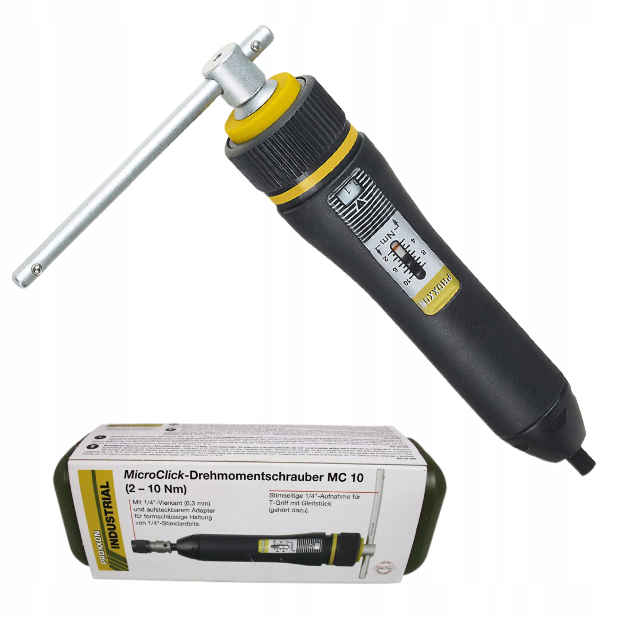 Ustawienie momentu obrotowego odbywa się poprzez obracanie rączki na końcu uchwytu (możliwość zablokowania). Wyraźnie czytelna skala z okienkiem. Dodatkowa mikroskala do precyzyjnej regulacji: 1 obrót = 2,0 Nm. Pierścień skali z gradacją co 0,2 Nm. Posiada 1/4-calowy napęd kwadratowy (6,3 mm) do mocowania nasadek oraz samozaciskowy adapter z uszczelką sprężynową do mocowania standardowych bitów o wymiarze 1/4-calowym (6,3 mm) w sposób dopasowany do kształtu. Tylny koniec wyposażony w złącze 1/4 cala do zamontowania uchwytu T (zawartego w zestawie). Dokładność +/- 6%. Całkowita długość 165 mm. Waga około 270 g.