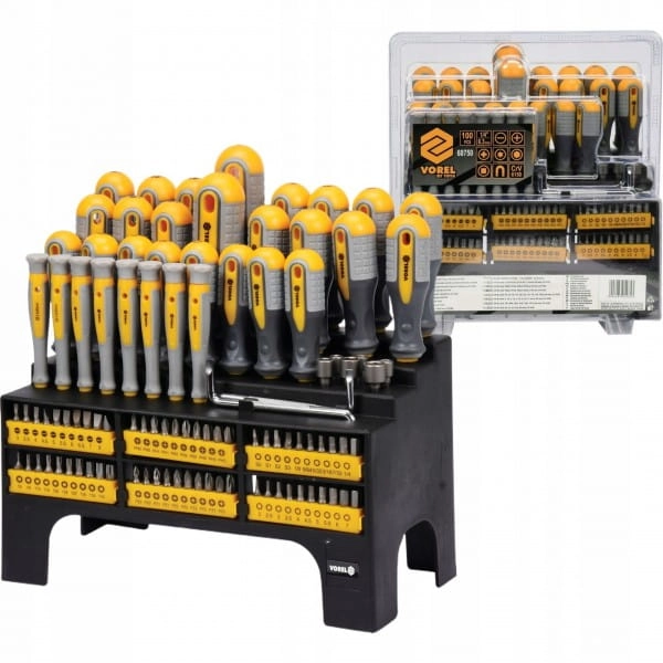 VOREL ZESTAW WKRĘTAKÓW ŚRUBOKRĘTÓW 100CZ. + STOJAK 60750