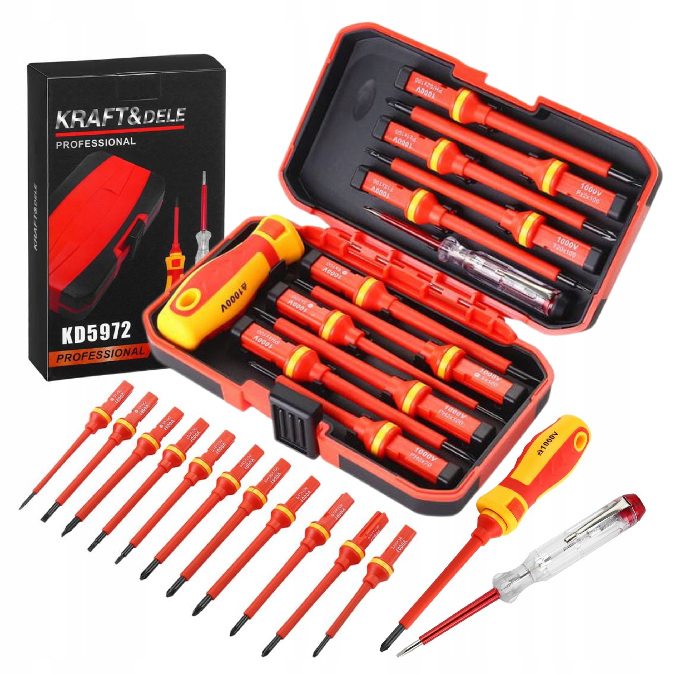 Profesjonalny zestaw KD5972 zawiera 14 izolowanych śrubokrętów przeznaczonych do pracy przy instalacjach elektrycznych. Niezastąpiony zarówno w warsztacie elektryka, jak i w domowym zestawie narzędzi.