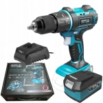 Za pomocą tej wkrętarki, której moment obrotowy wynosi 50 Nm, doskonale poradzimy sobie z wkręcaniem i wierceniem w takich materiałach jak drewno, metal, plastik, tworzywa sztuczne. Dodatkową funkcją w tym modelu jest udar mechaniczny, który poszerza zakres pracy urządzenia o wiercenia w betonie czy cegle. Obudowa wykonana została z nylonu z domieszką włókna szklanego, dzięki temu zwiększona została odporność na uszkodzenia mechaniczne i promieniowanie UV. Ergonomię oraz komfort pracy poprawiają: niewielka waga urządzenia oraz podgumowany uchwyt. Dodatkowe oświetlenie LED sprawi, że precyzyjnie wykonamy pracę w niedoświetlonych, trudno dostępnych miejscach.