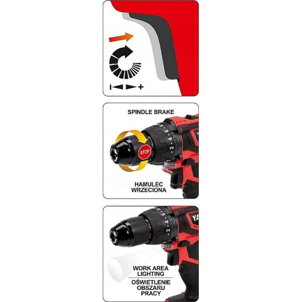 - 3 funkcje: wkręcanie, wiercenie, wiercenie udarowe
