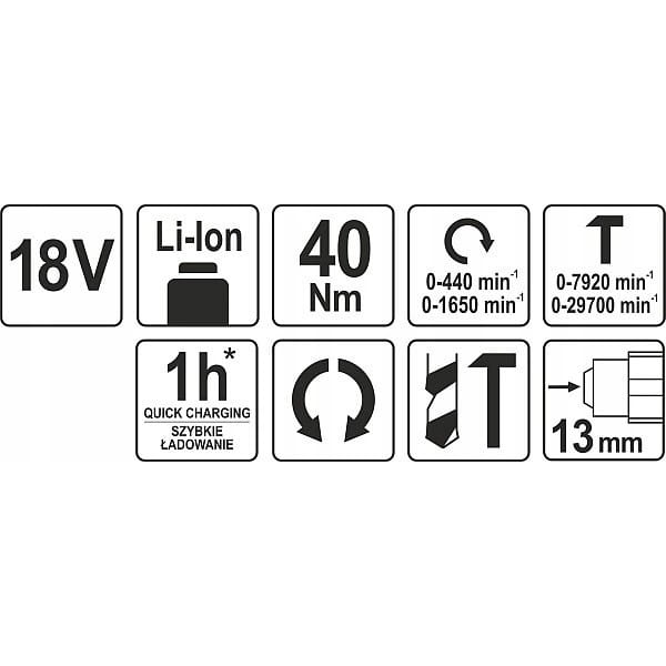 YATO WIERTARKO WKRĘTARKA UDAROWA AKUMULATOROWA LED 2 BIEGI 18V YT-82787