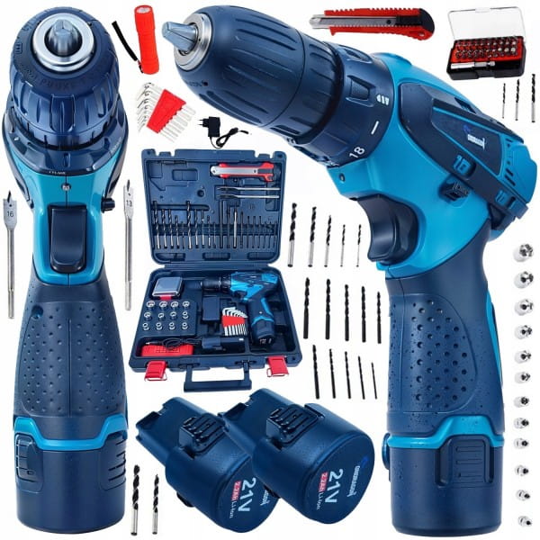 ✅ W zestawie znajdują się 2 akumulatory o pojemności 2,2mAh, które gwarantują nieprzerwaną pracę z wkrętarką.