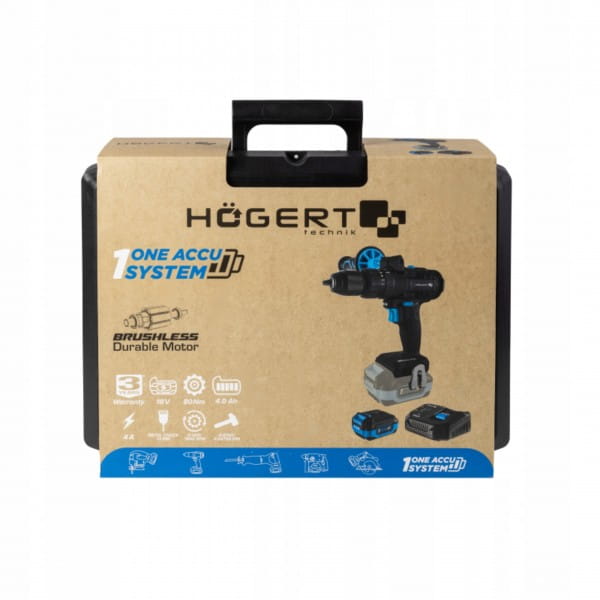 HOEGERT ZESTAW WIERTARKO WKRĘTARKA UDAROWA 80NM 4AH AKUMULATOR 18V WALIZKA
