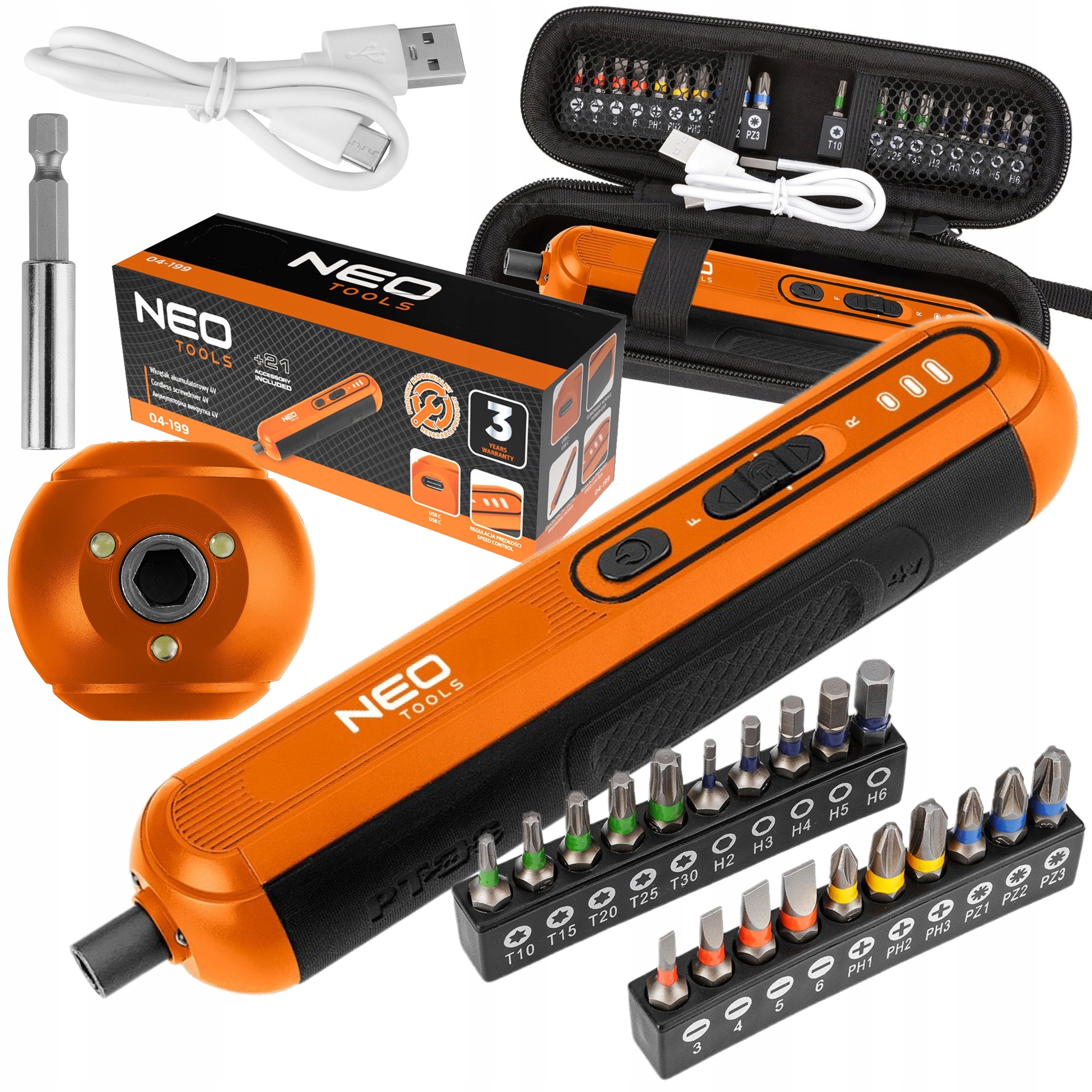 NEO ZESTAW WKRĘTAK AKUMULATOROWY 4V LI-ION LED USB-C +20el BITY ETUI 04-199