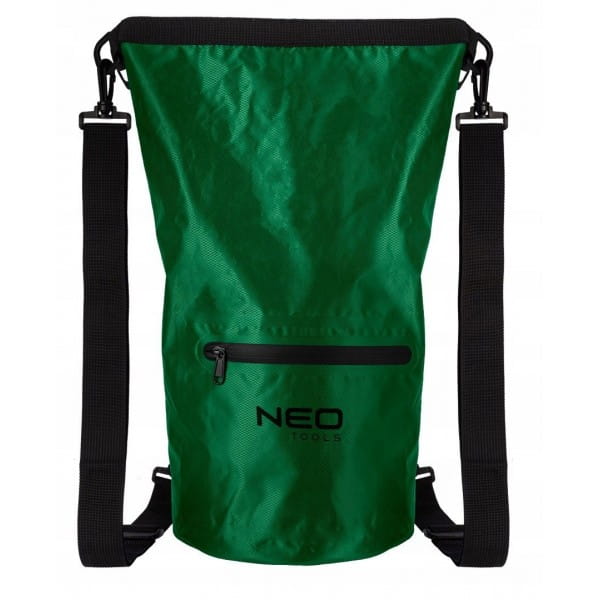 Worek wodoodporny 15 l 63-171 marki NEO TOOLS to worek z nylonu 210T, charakteryzujący się kategorią IPX4, oznaczającą ochronę przed spryskiwaniem i zachlapaniem wodą z różnych kierunków, z natężeniem do 10 litrów na minutę. Posiada średnicę 23 cm oraz maksymalną wysokość 48 cm. Jest lekki oraz wytrzymały. Dzięki szczelnemu zamknięciu poprzez zrolowanie i zabezpieczenie klamrą, chroni zawartość przed deszczem oraz wilgocią. Dodatkowa kieszonka z wodoodpornym zamkiem umożliwia przechowywania drobnych, cennych przedmiotów. Worek wodoodporny NEO TOOLS będzie niezbędny podczas wypraw, aby zabezpieczyć dokumenty, biżuterie, telefon czy czystą bieliznę.