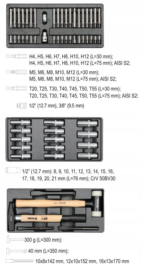 • 12 wymiennych wkładów (modułów) narzędziowych YATO