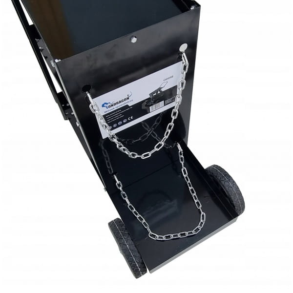 > Wózek przeznaczony do przewozu spawarek wraz z butlą i akcesoriami.