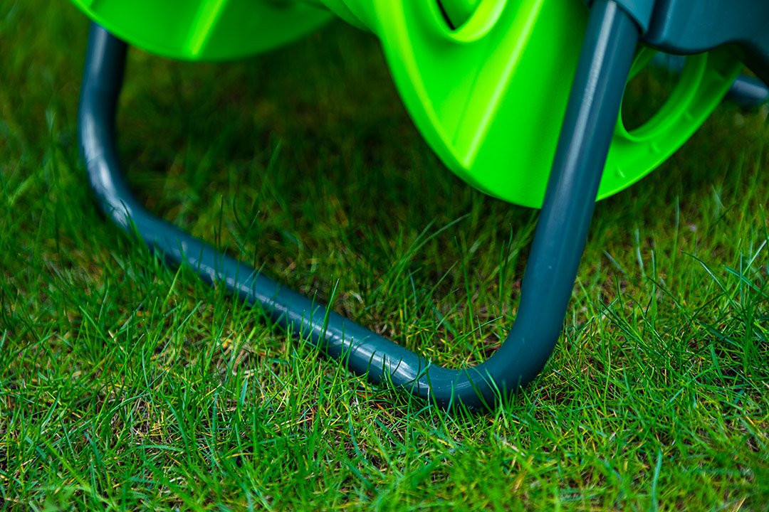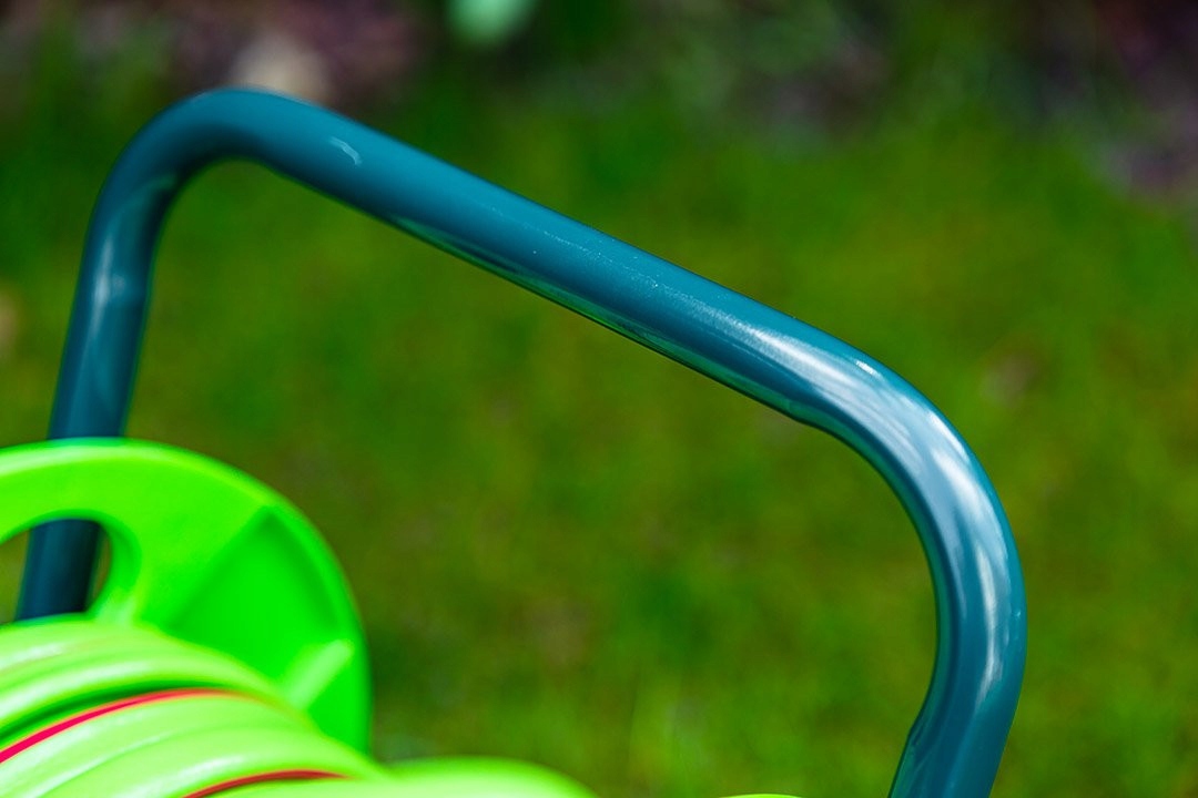 Stojak wykonany jest z wysokiej jakości tworzywa sztucznego. Jego konstrukcja dodatkowo została wzmocniona na bokach. Wąż można wygodnie nawinąć na bęben zamocowaną korbą z wygodną rękojeścią. Stojak posiada również rączkę, która jest przydatna podczas jego przenoszenia. Doskonałe rozwiązanie do ogrodu!