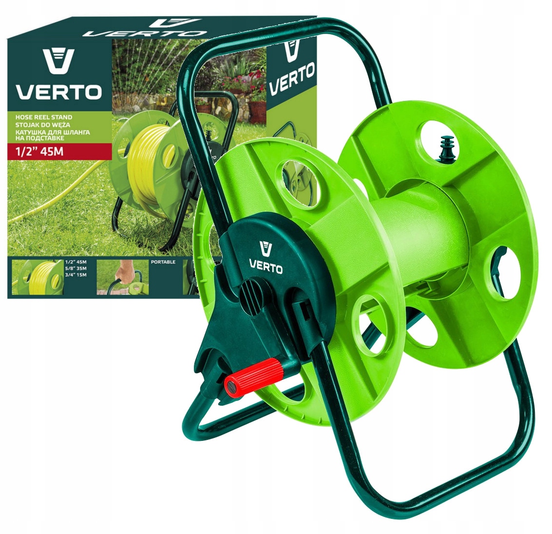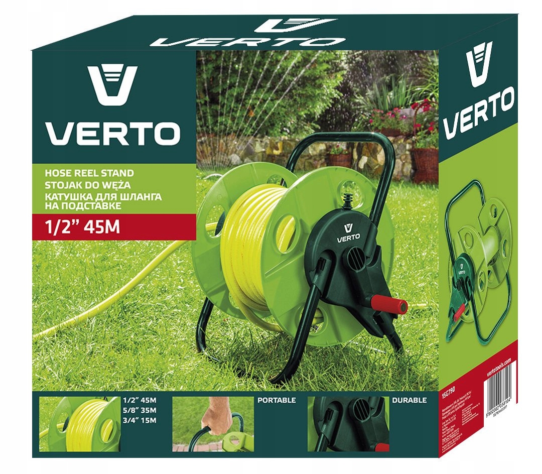 VERTO STOJAK NA WĄŻ OGRODOWY WÓZEK BĘBEN ZWIJACZ DO 45m 1/2" DO PODLEWANIA