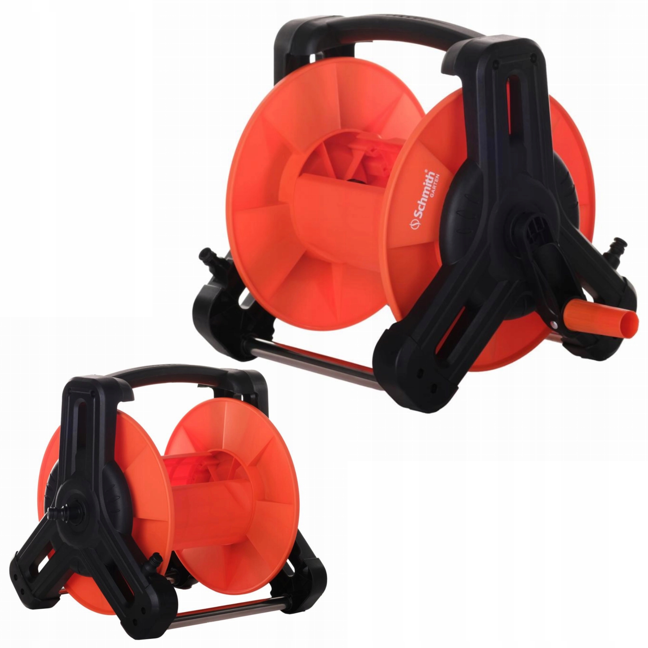 Przenośny stojak do nawijania węża ogrodowego, o lekkiej i jednocześnie wytrzymałej konstrukcji. Wyposażony w ergonomiczną korbę ułatwiającą nawijania węża oraz rączkę ułatwiającą transport.