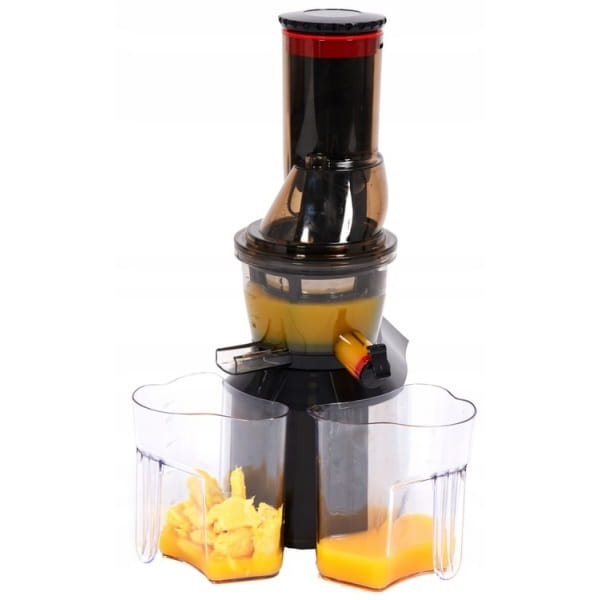 Odsączony miąższ i wyciśnięty sok zostają skierowane do osobnych pojemników, dzięki czemu sok jest gotowy do picia bezpośrednio po zakończeniu pracy urządzenia.