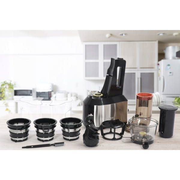 Specjalnie wyprofilowany ślimak delikatnie i powoli miażdży składniki a następnie przy wolnych obrotach przeciska produkty przez sitko wyciskając z nich soki. Dzięki temu nie są one napowietrzone oraz zawierają dużą ilość składników odżywczych