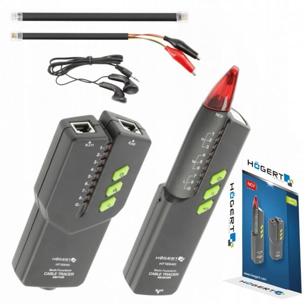 Profesjonalny wykrywacz przewodów internetowych RJ45 oraz telefonicznych RJ11. Wykorzystywany do sprawdzania poprawności kolejności zaciśnięcia złączek (tzw. parowanie) oraz do wyszukiwania przewodów np. w szafie serwerowej. Wyszukiwanie można prowadzić bezpośrednio po podłączeniu do sprzętu o słabym prądzie, takiego jak przełącznik Ethernet, czy router dowolnego modelu oraz metodą indukcyjną, zbliżając wykrywacz do przewodu.