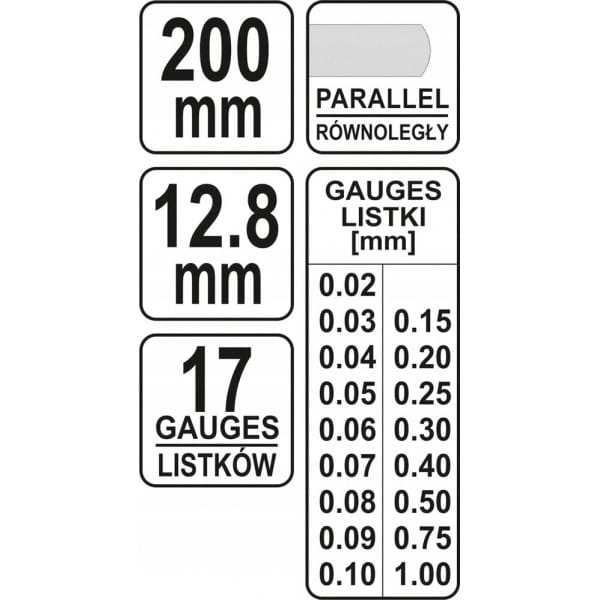 YATO 7221 SZCZELINOMIERZ 200MM 17 LISTKÓW 0,02-1MM