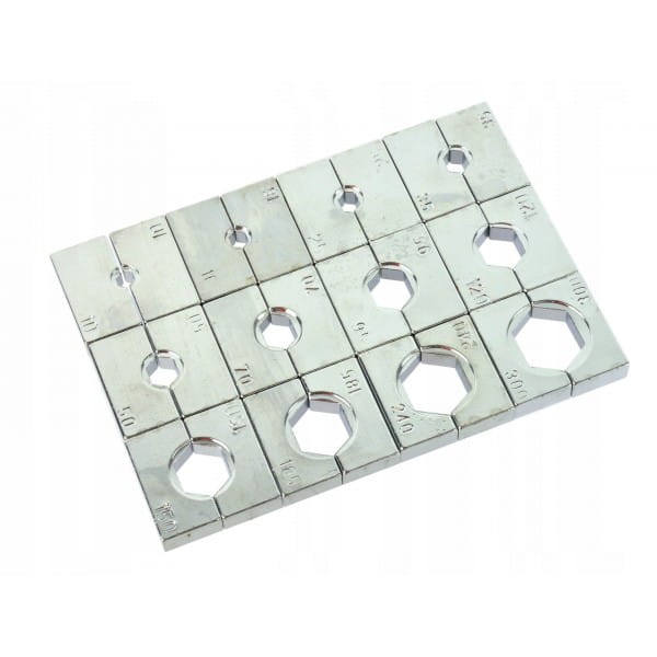 - zestaw 12 matryc w rozmiarach 10-300 mm2; wykonane z hartowanej stali z chromowanym wykończeniem