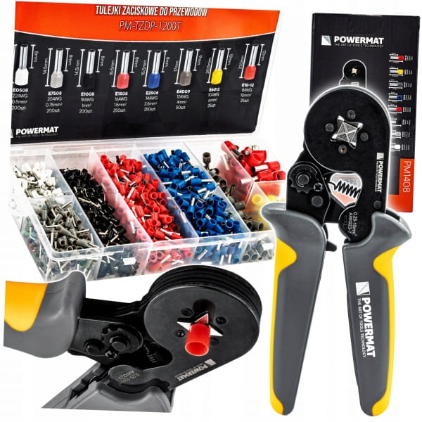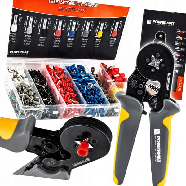 0,25-10 MM² | REGULOWANY MECHANIZM DOCISKU | BLOKADA RAMION | 1200 TULEJEK W ZESTAWIE