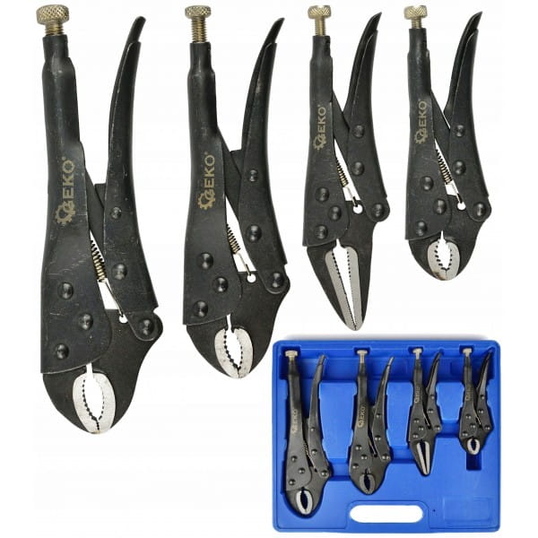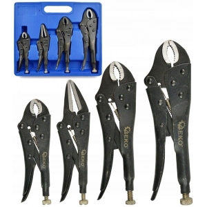 Zestaw udarowych szczypiec zaciskowych morse'a. W skład zestawu wchodzą szczypce w 4 rozmiarach, wykonane zostały przy użyciu wysokiej jakości materiałów. Szczęki ze stali węglowej C45 poddanej odpowiedniej obróbce cieplnej, która charakteryzuje się dużą wytrzymałością oraz znaczną ciągliwością. Rękojeści wykonane ze stali Q235.