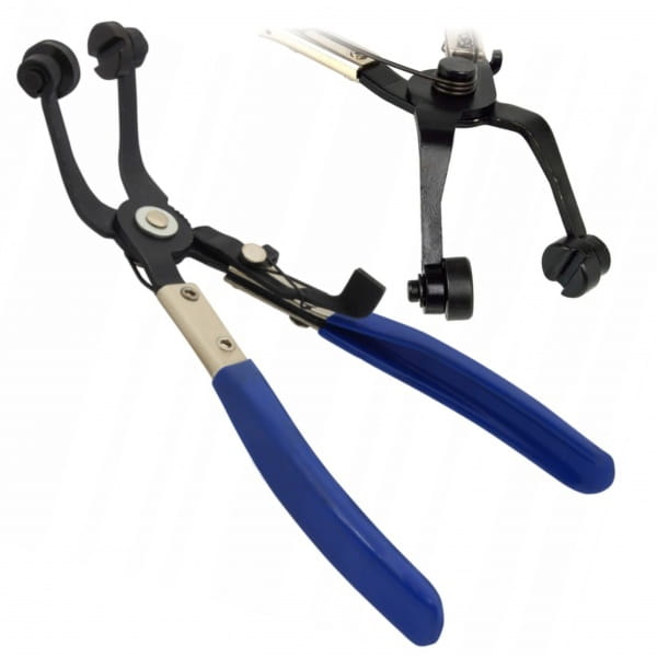 Szczypce służą do ściskania opasek rozprężnych stosowanych na przewodach elastycznych paliwowych, olejowych oraz wodnych. Specjalnie zagięte szczęki pozwalają na uchwycenie opaski w trudno dostępnych miejscach. Posiadają 8-stopniowy mechanizm blokujący je automatycznie w położeniu zamkniętym.
