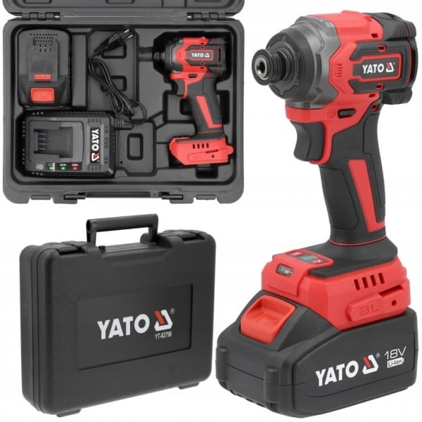 Bezszczotkowa zakrętarka udarowa zasilana akumulatorem platformy YATO 18V. Jej główną zaletą jest bardzo krótki korpus o długości 90 mm. Dzięki temu pozwala na pracę w trudno dostępnych miejscach i prostopadłe dociskanie wkrętu do materiału. 4-stopniowa regulacja momentu dokręcającego i odkręcającego chroni użytkownika przed zrywaniem i przegłębianiem śrub. Udar styczny zabezpiecza przed przeskakiwaniem bita podczas wkręcania. Zakrętarka wyposażona jest w trwały uchwyt narzędziowy hex. Zakrętarka posiada zabezpieczenie termiczne chroniące przed przeciążeniem.
