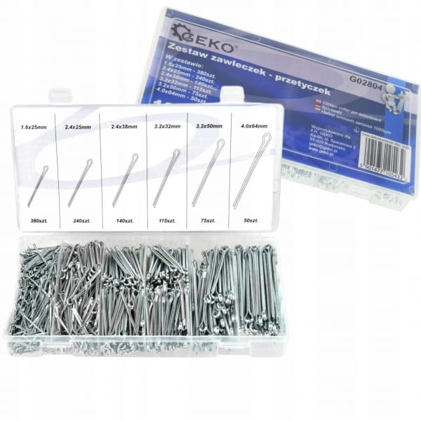GEKO KOMPLET ZAWLECZEK PRZETYCZEK ROZGINANYCH 1000 SZTUK SORTOWNIK G02804