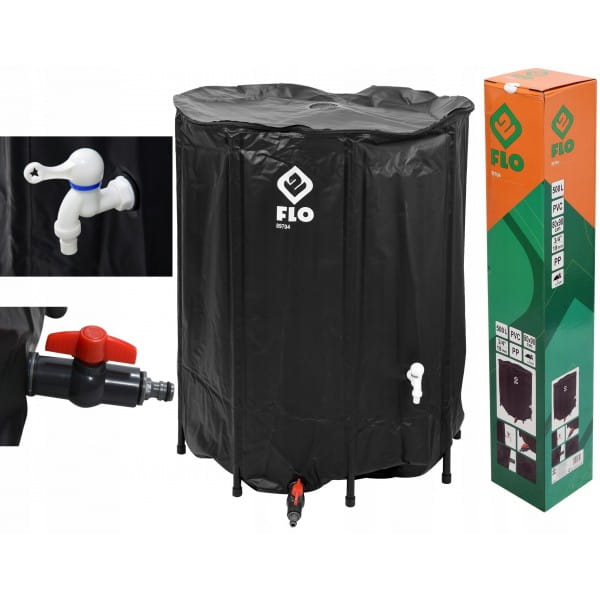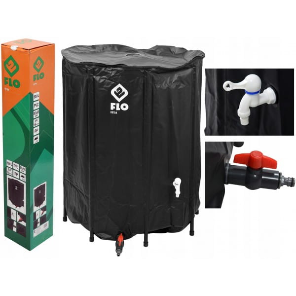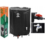Składany, elastyczny zbiornik na deszczówkę z wbudowanym filtrem i zaworem przelewowym. Przeznaczony do zbierania wody spływającej np. z rynien, której można następnie użyć np. do podlewania ogrodu, roślin doniczkowych czy mycia samochodu. Zbiornik składa się na płasko, aby ułatwić przechowywanie pod koniec sezonu.