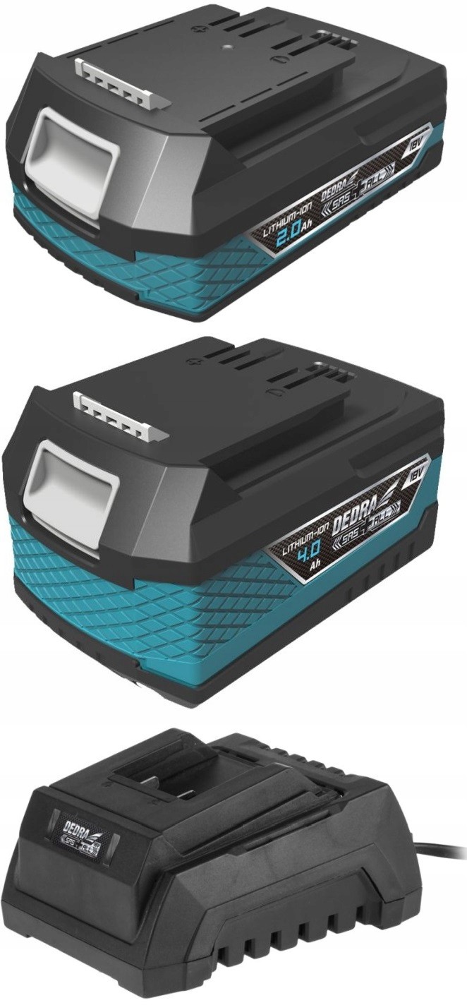 Akumulatory i ładowarki są kompatybilne ze wszystkimi urządzeniami DEDRA SAS+ALL o napięciu 18V.