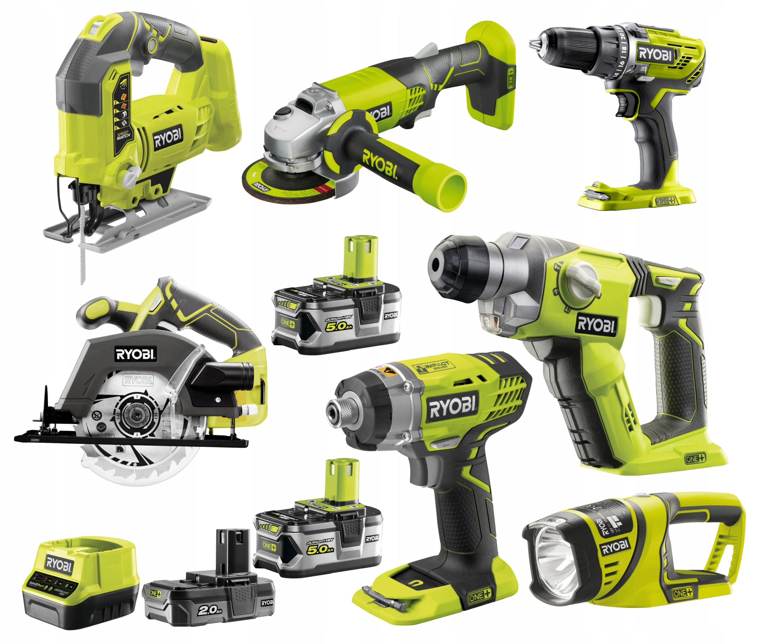 • RYOBI ZESTAW NARZĘDZI 10el WKRĘTARKA 3xBATERIA 18V