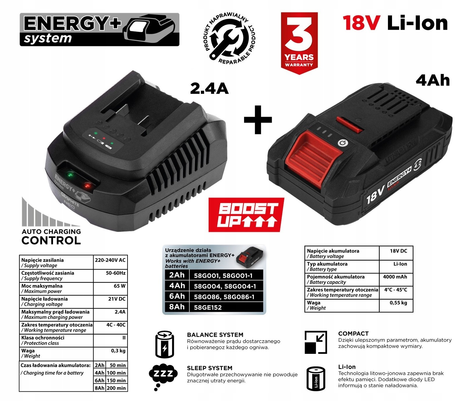 GRAPHITE ZESTAW AKUMULATOR 4AH BOOST UP Z ŁADOWARKĄ ENERGY+ 58GE132-1 NEO