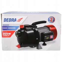 Ogrodowa pompa wody DEDRA DED8865 zasilana jest z gniazdka, a jej 800W silnik pozwala na uzyskanie przepływu aż 3700l/h. Hermetyczna obudowa i włącznik zapewniają bezpieczeństwo użytkowania, a wyprofilowany, wygodny uchwyt do przenoszenia ułatwia transport. Pompa umożliwia zasysanie wody z głębokości 8m, co daje możliwość pozyskiwania wody nawet w czasach suszy bez konieczności upuszczania pompy. Wysokość podnoszenia natomiast, to aż 40m, dzięki czemu możemy zasilić wodą nawet najdalej oddalone fragmenty terenu - nawet przy nachylonym stoku.