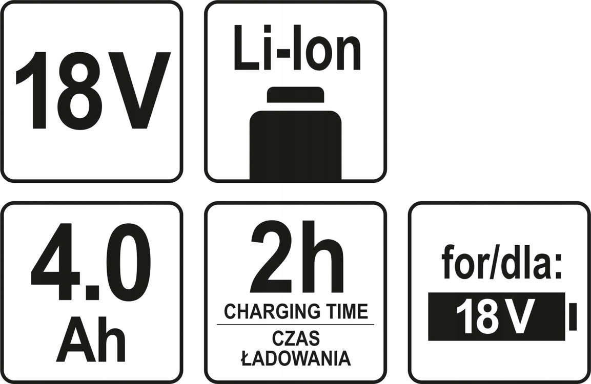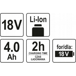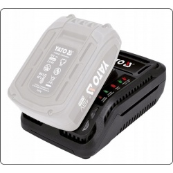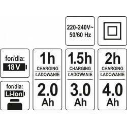 Ładowarka sieciowa do baterii 18 V o ogniwach litowo-jonowych. Prąd ładowania jest dopasowany do charakterystyki ogniw, co wydłuża żywotność akumulatora.