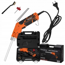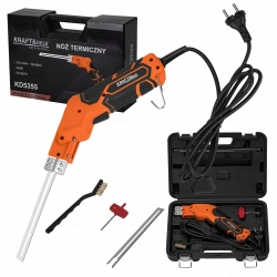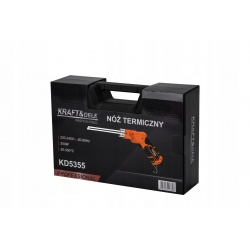 Model KD5355 zasilany jest z sieci 220–240V i pracuje z częstotliwością 50Hz. Odpowiednio dobrana moc pozwala na szybkie nagrzewanie ostrza oraz płynne cięcie bez zbędnego wysiłku. Narzędzie idealne do cięcia płyt PCV, tworzyw termoplastycznych, gumy oraz innych materiałów syntetycznych.