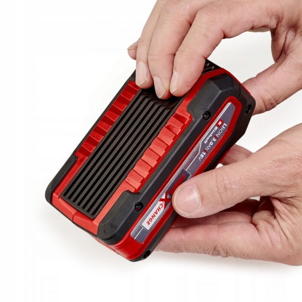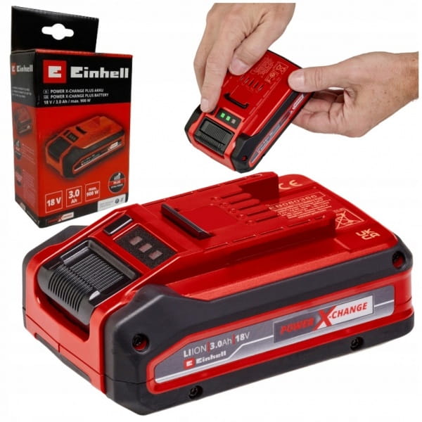 jest częścią wielofunkcyjnego systemu akumulatorów Power X-Change firmy Einhell. Uniwersalne akumulatory Power X-Change zapewniają moc i wytrzymałość wszystkim narzędziom akumulatorowym z całej rodziny produktów ogrodowych i warsztatowych. Korzyści dla klienta są oczywiste: dzięki jednemu akumulatorowi i jednej ładowarce do wszystkich narzędzi można nie tylko zaoszczędzić znaczne koszty przy zakupie – ich uniwersalne zastosowanie chroni środowisko, a jednocześnie zapewnia wszechstronność w domu i ogrodzie. Nie ma też bałaganu i chaosu związanego z różnymi akumulatorami i ładowarkami dla poszczególnych urządzeń. Najnowsza generacja ogniw litowo-jonowych zapewnia 100% więcej mocy dla maksymalnej wydajności we wszystkich zastosowaniach, w połączeniu z 13% bardziej kompaktową konstrukcją i 10% redukcją wagi. Technologia PLUS zapewnia również dodatkową moc do pracy wymagającej dużej wydajności. Wysokiej jakości akumulator jest również odporny na efekt pamięci i typowe samorozładowanie, zapewniając stałą, wysoką moc. Akumulator 18 V 3,0 Ah PXC PLUS to wysokiej klasy akumulator z rodziny Power X-Change, który nadaje się również do zastosowań TWIN-PACK w urządzeniach 36V. Sterowany procesowo, aktywny system zarządzania akumulatorem ABS stale monitoruje parametry akumulatora za pomocą zastosowanego mikroprocesora. Zapewnia to maksymalne bezpieczeństwo, optymalną wydajność urządzenia, maksymalny czas pracy i maksymalną żywotność. Aktualny stan naładowania można sprawdzić za pomocą 3-stopniowego wyświetlacza LED. Konstrukcja obudowy sprawia, że jest ona odporna na kurz, korozję i czynniki mechaniczne. Gumowa powłoka zapewnia wysoką ochronę przed uderzeniami i dobry chwyt. Można go łatwo wyjąć ze wszystkich urządzeń za pomocą zagłębionego uchwytu.
