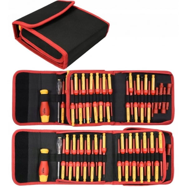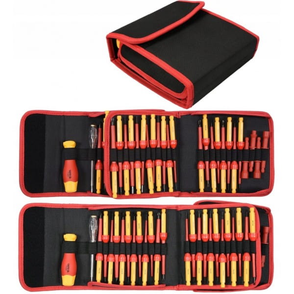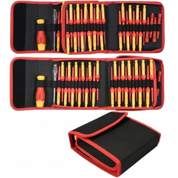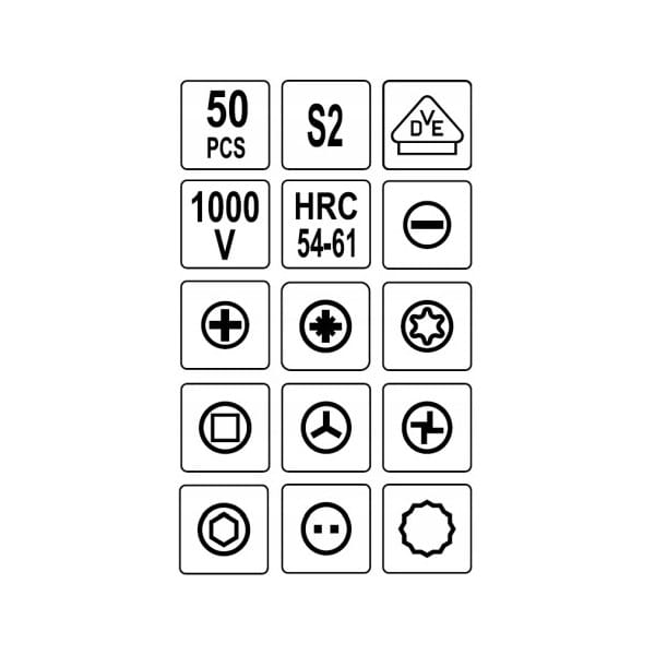 Zestaw wkrętak + końcówki 50 części YT-28293 z rączką w izolacji VDE, groty wykonane z wytrzymałej stali S2 o twardości HRC 56-60.
