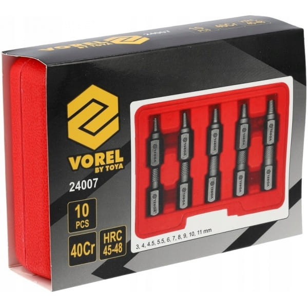 VOREL WYKRĘTAKI DO USZKODZONYCH ŚRUB WEWNĘTRZNYCH HEX TORX SPLINE 10EL