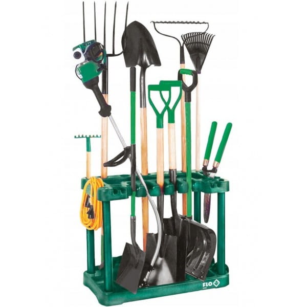 Praktyczne rozwiązanie do przechowywania długich narzędzi ogrodniczych typu motyki, łopaty, widły, jak również małych narzędzi ręcznych czy przedłużaczy.