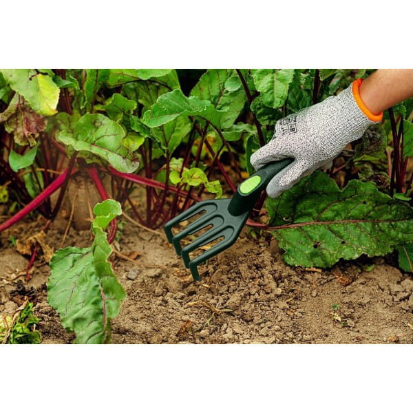 ZESTAW NARZĘDZI RĘCZNYCH 4 SZT. TWORZYWO SZTUCZNE (GRABKI, PAZURKI, ŁOPATKA, MOTYKO/PAZURKI)