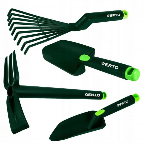 VERTO ZESTAW NARZĘDZI OGRODNICZYCH OGRODOWYCH 4 EL. ŁOPATKA GRABKI PAZURKI