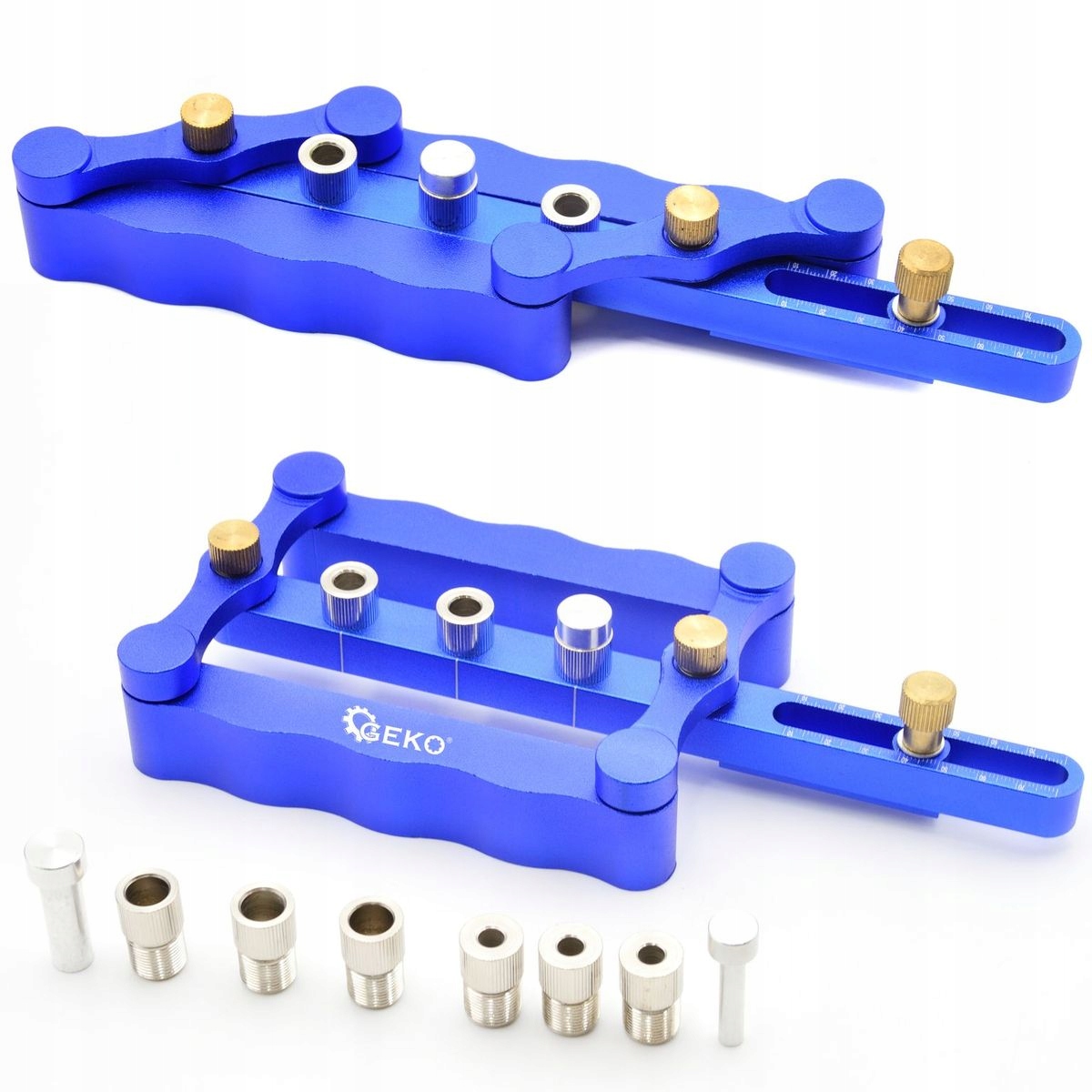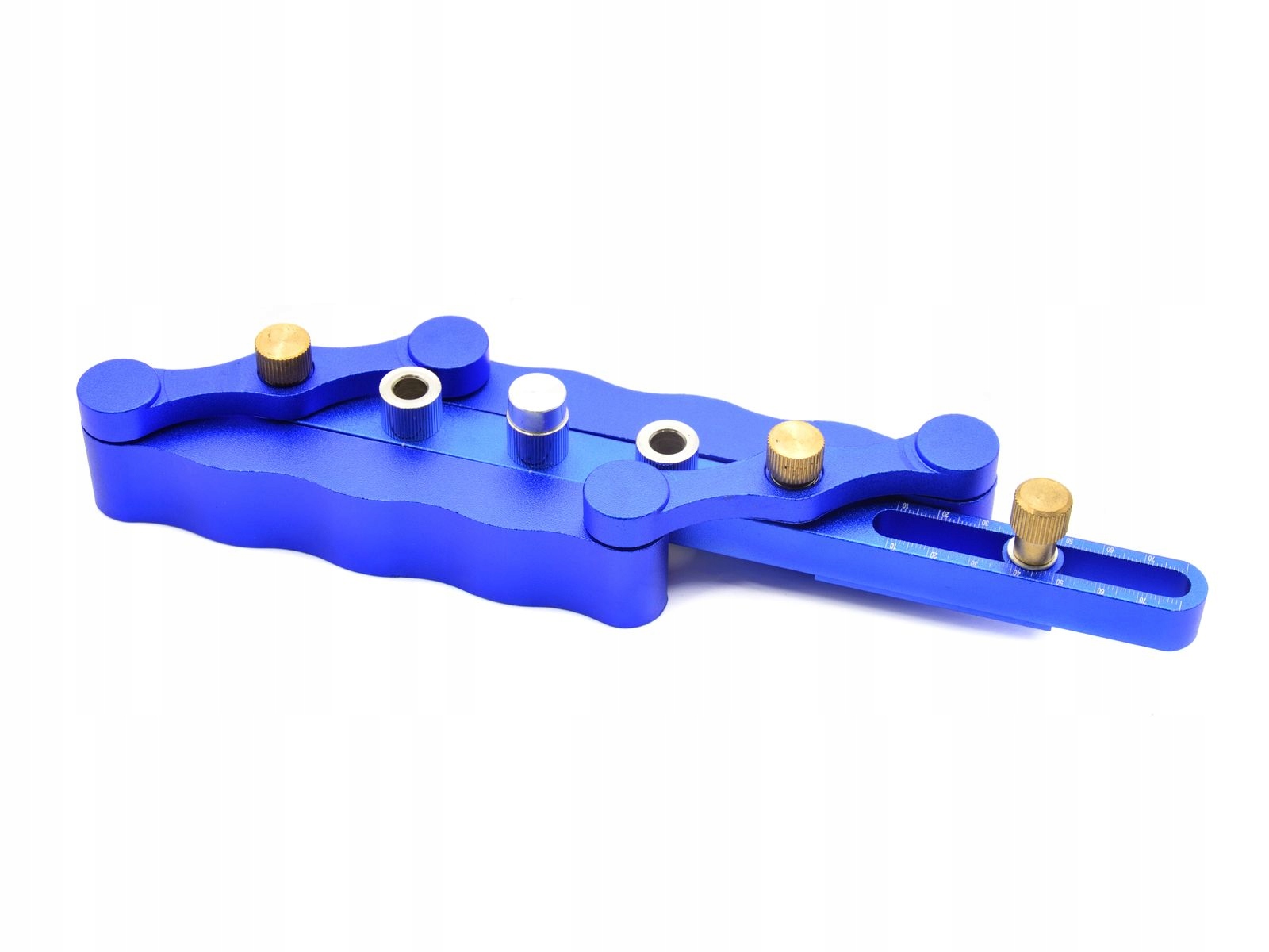 Przyrząd przeznaczony do wykonywania połączeń kołkowych elementów drewnianych i wykonanych z materiałów drewnopochodnych. Szablon umożliwia wykonywanie otworów na krawędziach oraz na płaszczyźnie. Korpus przyrządu wykonano ze stopu aluminium, natomiast tuleje ustalające z utwardzanej stali.