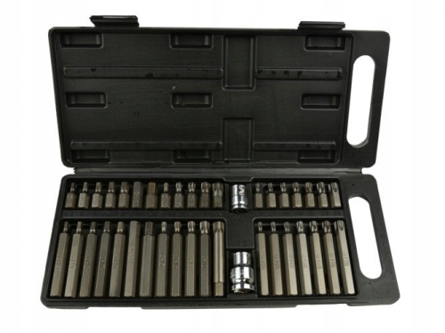 Profesjonalny zestaw bitów jest niezastąpiony w warsztatach, serwisach maszyn, samochodów czy innych pojazdów. Komplet wykonano z wysokiej jakości stali stopowej narzędziowej, dzięki czemu jest niezawodny i trwały. Wysoka twardość i odporność mechaniczna umożliwia pracę z większymi obciążeniami. Precyzyjnie spasowane wymiary zapewniają lepszą ochronę dla łbów śrub i pozwalają na stosowanie większych momentów dokręcających. W zestawie znajdują się końcówki długie (75 mm) i krótkie (30 mm) oraz uchwyty sześciokątne pozwalające korzystać z grzechotek 3/8" lub 1/2". Przechowywanie i transport ułatwia praktyczna walizka z wytrzymałego tworzywa sztucznego.