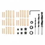 Zestaw do połączeń kołkowych, 43 elementy, marki VERTO to niezbędny produkt do pracy z drewnem w mniejszej skali. Umożliwia on montaż prostszych konstrukcji oraz sprzyja samodzielnej realizacji mebli. Dedykowany jest przede wszystkim początkującym oraz średniozaawansowanym majsterkowiczom. Zestaw zawiera trzy odpowiednio sprofilowane wiertła do drewna, za pomocą których można wykonać otwory o średnicy 6, 8 i 10 mm, sześć znaczników, trzy ograniczniki głębokości oraz pakiet pasujących kołków w różnych rozmiarach. Zapakowany został w wygodny blister chroniący zawartość przed czynnikami zewnętrznymi.