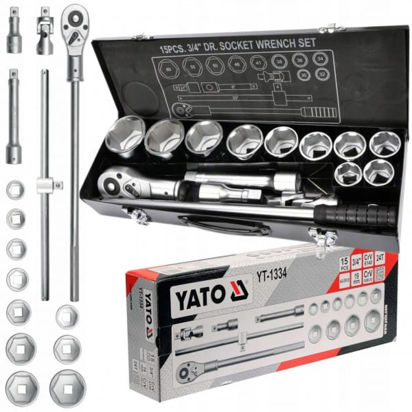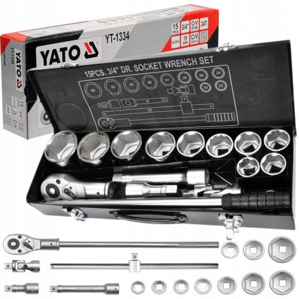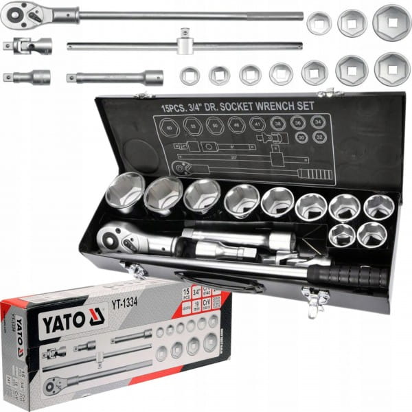ZESTAW KLUCZE NASADOWE 3/4 '' WALIZKA 15 ELEMENTÓW ZE STALI CRV YATO