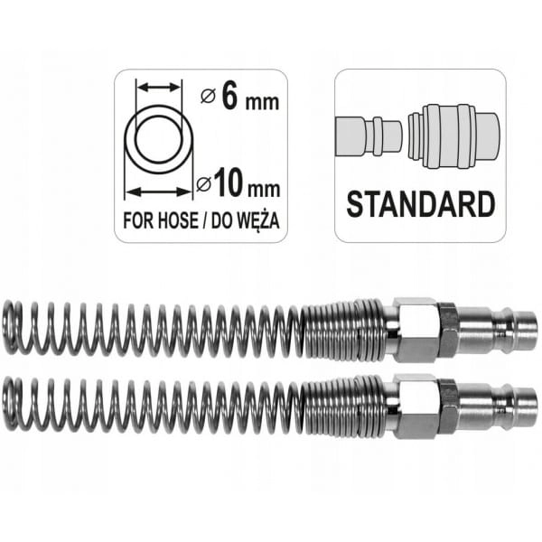 YATO STALOWE SZYBKOZŁĄCZE M ZE SPRĘZYNĄ NA WĄŻ 6X10MM 2 SZTUKI YT-24103