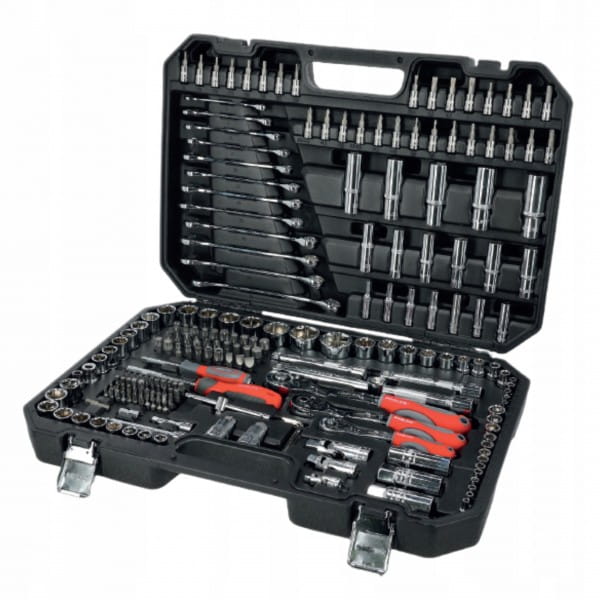 ZESTAW 216 SZT., 1/4", 3/8", 1/2" KWADRAT, 4-32 MM Z KLUCZAMI OCZKOWO-PŁASKIMI 8-19 MM