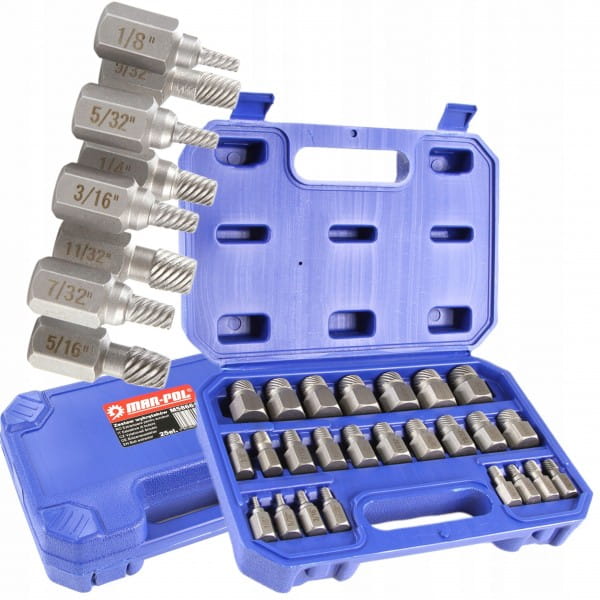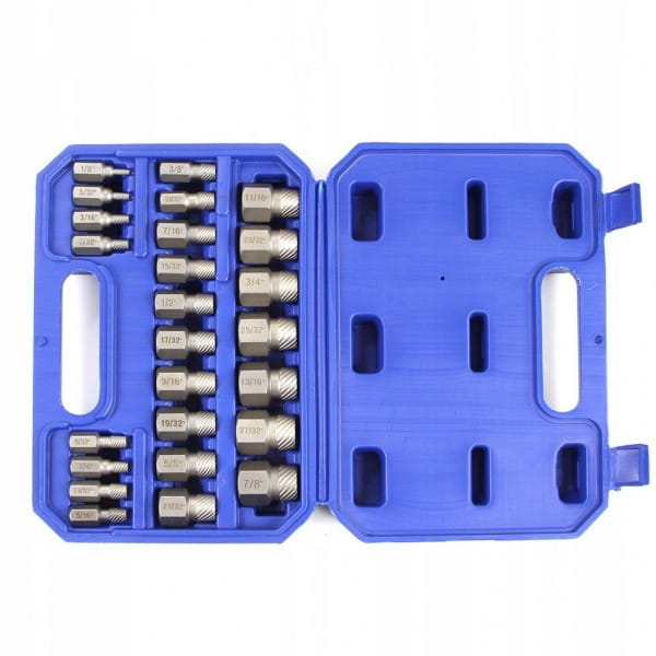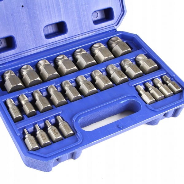 Zestaw wykrętaków do uszkodzonych śrub to idealny produkt do usuwania uszkodzonych bolców, śrub, złączek smarowniczych oraz podobnych elementów.