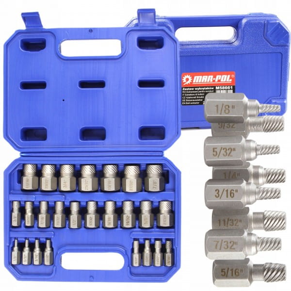 ZESTAW WYKRĘTAKÓW DO USZKODZONYCH ŚRUB WEWNĘTRZNYCH 25SZT 1/8" - 7/8 M58661