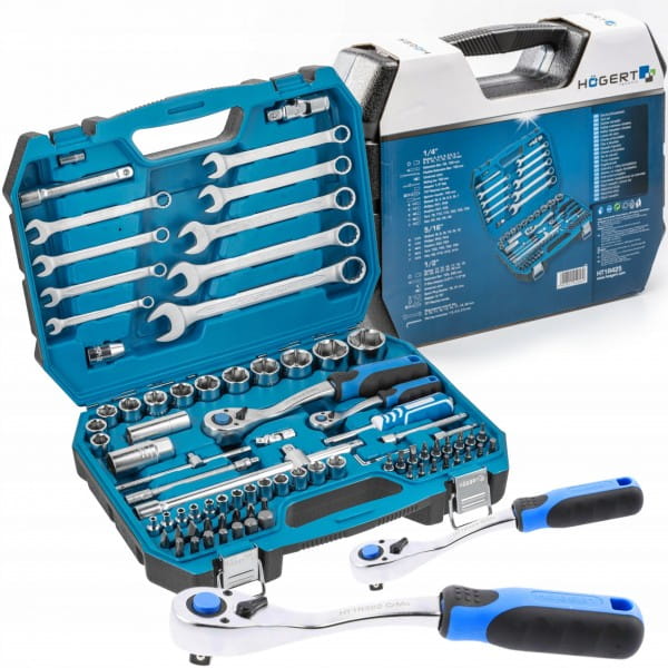 HOGERT ZESTAW NASADKI BITY KLUCZE PŁASKIE NASADOWE 85 EL 1/4" 1/2" HT1R425