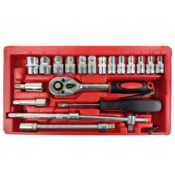 - 13 szt. Nasadki 1/4'': 4; 4.5; 5; 5.5; 6; 7; 8; 9; 10; 11; 12; 13; 14 mm