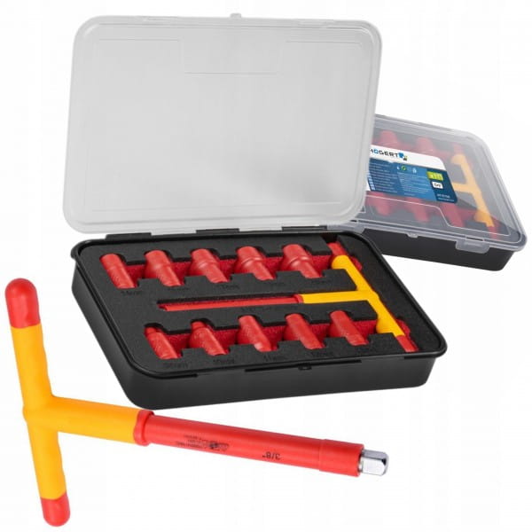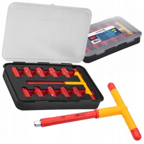 HOEGERT ZESTAW NASADEK IZOLOWANYCH 11E KLUCZ T CERTYFIKAT VDE 1000V HT1E102